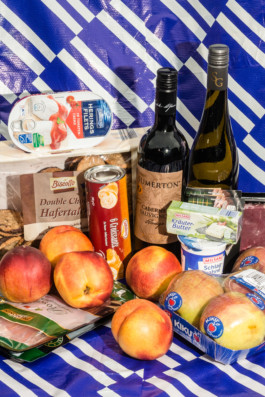 Nicole und Paul könnte man eher für Geschwister als für Mutter und Sohn halten. Der Einkauf fällt sonntäglich aus: Aufbackcroissants, ein schönes Stück Fleisch und ein feiner Weißwein stehen hier ganz oben auf dem Einkaufszettel. 41,50 € haben sie sich das kosten lassen.